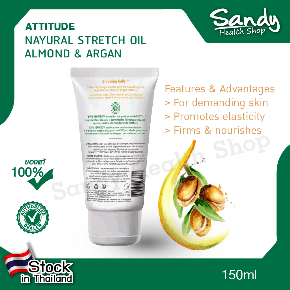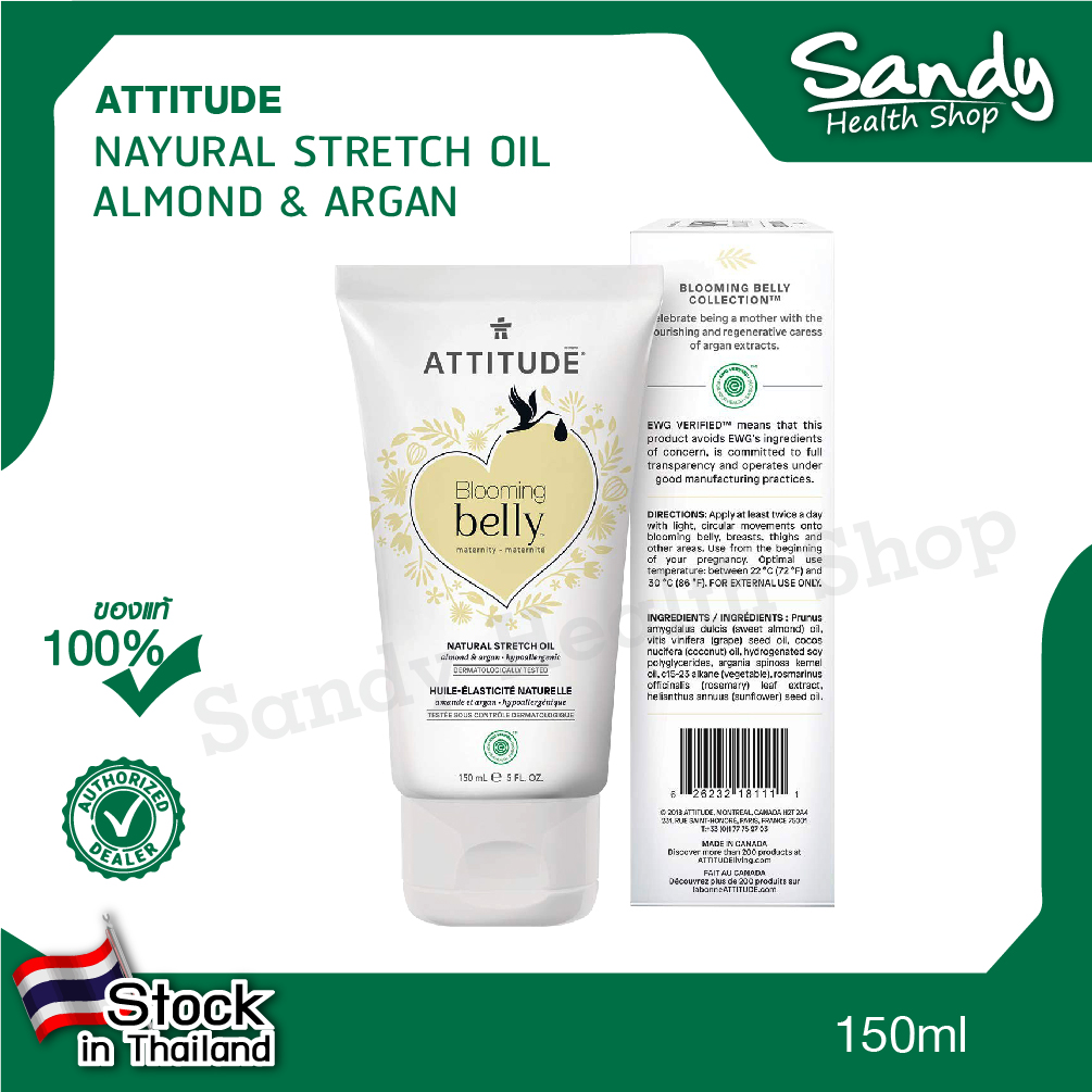 เนื่องจากรอยแผลเป็นเกิดขึ้นหลังคลอด ครีมบำรุงหน้าท้องของ ATTITUDE จึงถูกคิดค้นขึ้นเพื่อช่วยรักษาความยืดหยุ่นของผิวในระหว่างตั้งครรภ์ น้ำมันมอยซ์เจอไรเซอร์ที่ออกฤทธิ์เร็วของเรามีส่วนผสมจากธรรมชาติและไม่ทำให้แพ้ง่าย มีส่วนผสมของอาร์แกนและน้ำมันอัลมอนด์ที่อุดมไปด้วยสารต้านอนุมูลอิสระเพื่อให้ผิวกระชับและบำรุงผิวในขณะที่ปลอดภัยสำหรับทั้งคุณแม่และลูกน้อย Because scarring occurs when the skin can't bounce back after a period of intense growth, ATTITUDE's Blooming Belly Stretch Oil is formulated to help maintain your skin's elasticity during your pregnancy. Formulated with natural and hypoallergenic ingredients, our fast-acting moisturizing oil features antioxidant-rich argan and almond oils to firm and nourish skin while being safe for both mom and baby.