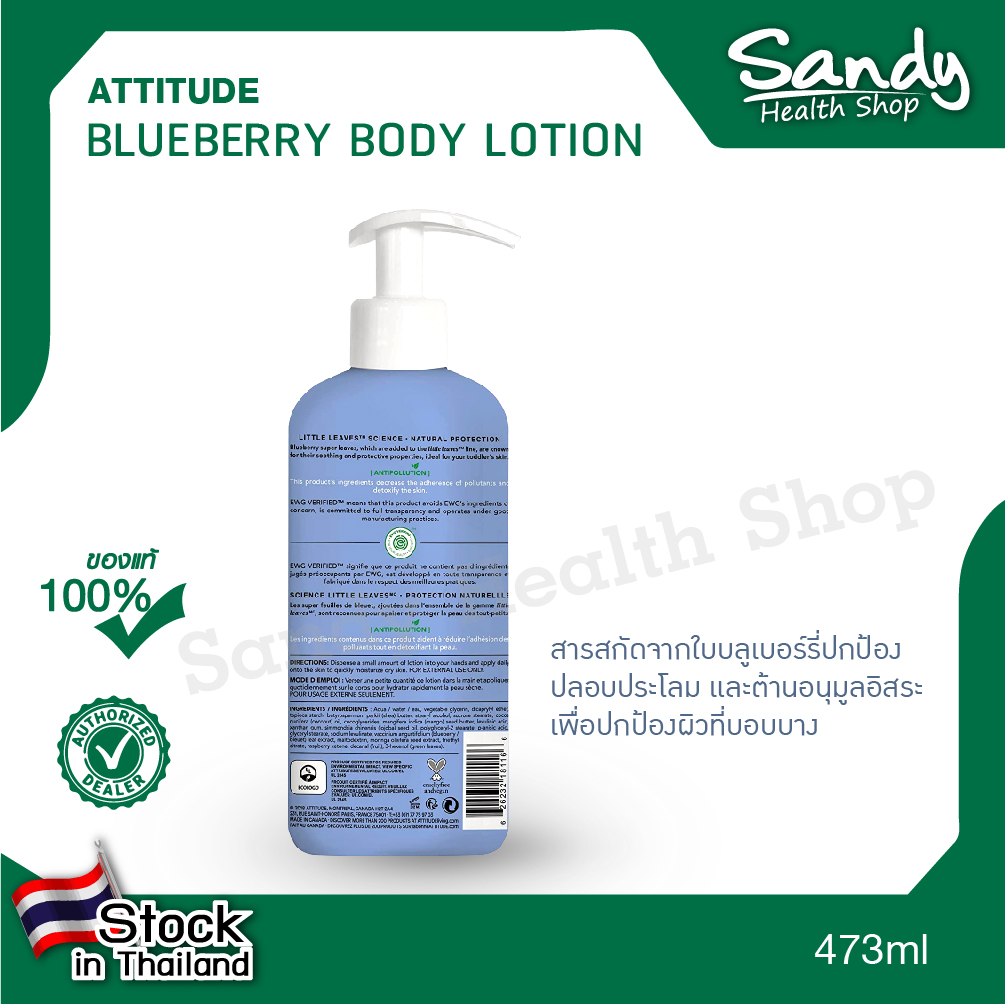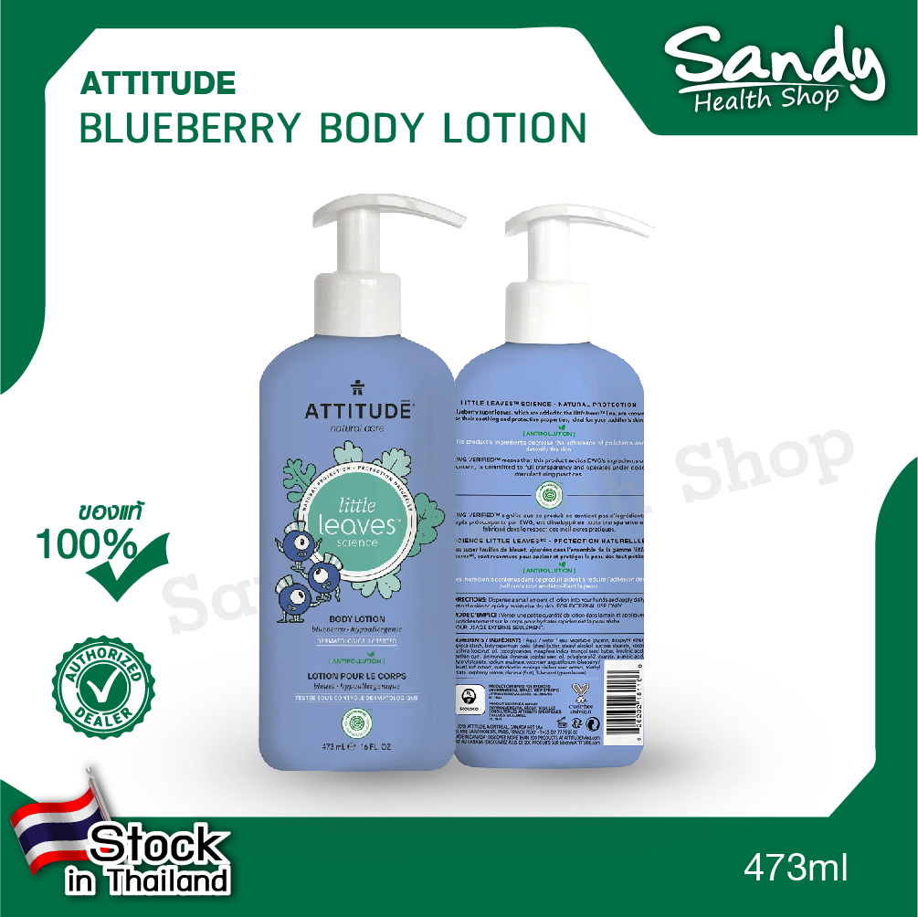 วิธีที่ดีที่สุดในการกักเก็บความชื้นหลังจากอาบน้ำของลูกน้อยคือ การทาโลชั่นบำรุงผิวกาย! ATTITUDE little leaves™ Natural Body Lotion บลูเบอร์รี่เสริมด้วยสารสกัดจากใบบลูเบอร์รี่และเมล็ดมะรุม ซึ่งเป็นส่วนผสมในการปกป้องและปลอบประโลมผิวที่ช่วยให้ผิวของลูกน้อยแข็งแรง ชุ่มชื่น และอ่อนนุ่มตลอดวัน มอยส์เจอไรเซอร์เนื้อบางเบาที่ไม่ก่อให้เกิดอาการแพ้และ EWG VERIFIED™ ช่วยปกป้องผิวบอบบางของลูกน้อยเพื่อให้รู้สึกสบายตัว และผ่อนคลาย เป็นโลชั่นบำรุงผิวกายจากธรรมชาติWhat’s the best way to seal in moisture after your little one’s bath? By applying body lotion! ATTITUDE little leaves™ Natural Body Lotion – Blueberry is enhanced with blueberry leaf and moringa seed extract – protective and soothing ingredients that ensure your child’s skin stays healthy, moisturized and soft, all day long. Our hypoallergenic, EWG VERIFIED™ and Parent Tested Parent Approved (PTPA) lightweight moisturizer protects your child’s delicate skin to get them comfy, cozy and relaxed. It’s a natural body lotion with only beneficial ingredients so they can play or sleep the night away!